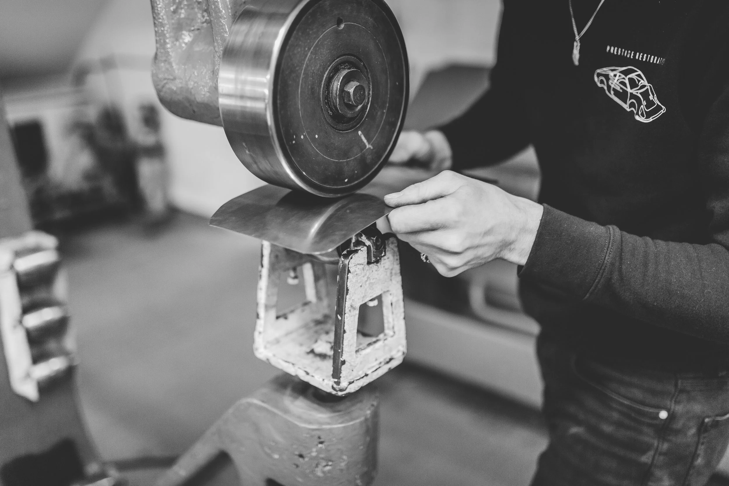 used the English wheel extensively to form aluminum and steel body panels by hand.